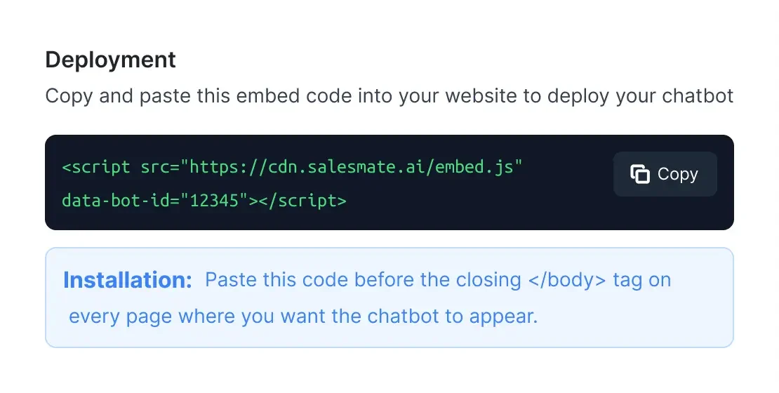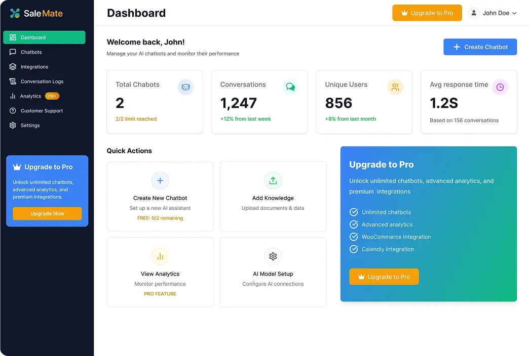 Whether you’re closing deals, providing support, or automating onboarding—SaleMate adapts to your workflow.